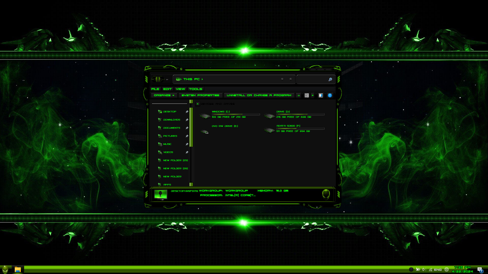 Transform Windows to Alienware Green Premium