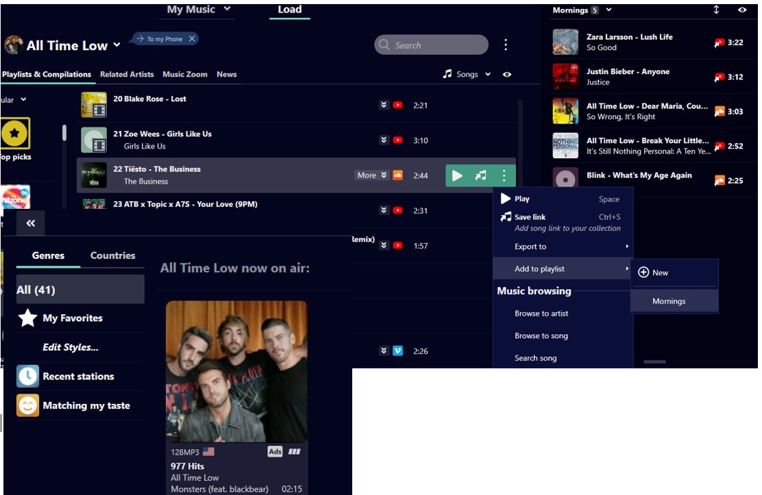 Create a playlist with your favorite songs and mix up genres, artists, or languages to make it unique. Search for content on almost every streaming service such as Spotify, Amazon Music, Soundcloud, Vimeo. Expand existing playlists or create new ones. Enjoy all your favorite tracks using the visually appealing player. Lyrics and cover artwork will be added to your music. In addition, check which radio channels are playing your favorite artists/band right now.