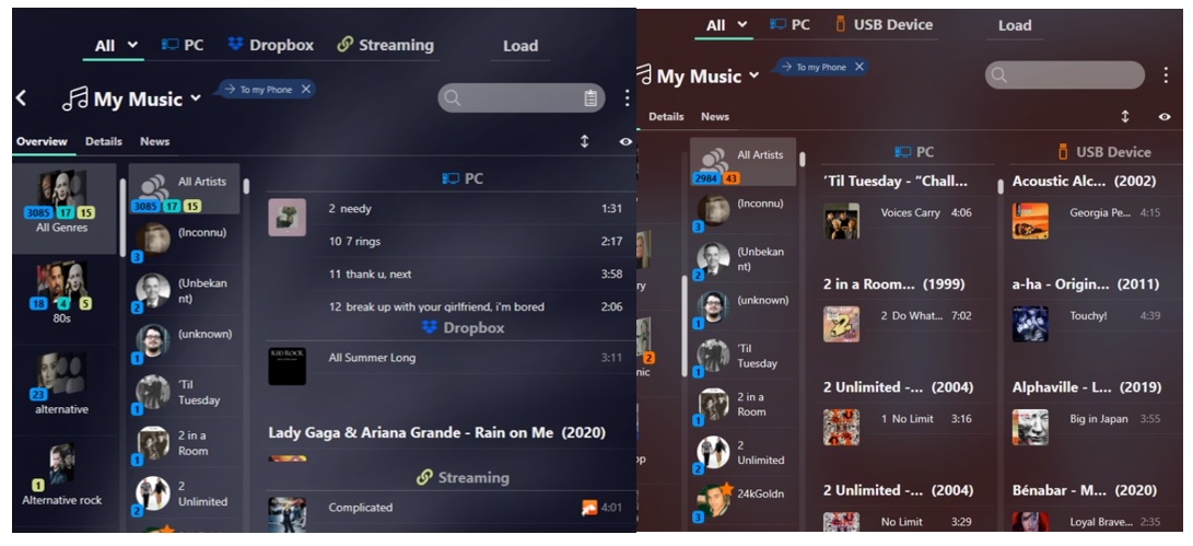 Always have a clear overview of all your music libraries. Collate your content according to genre, artists, or albums, and use the Power-Search function to search for specific songs and artists.