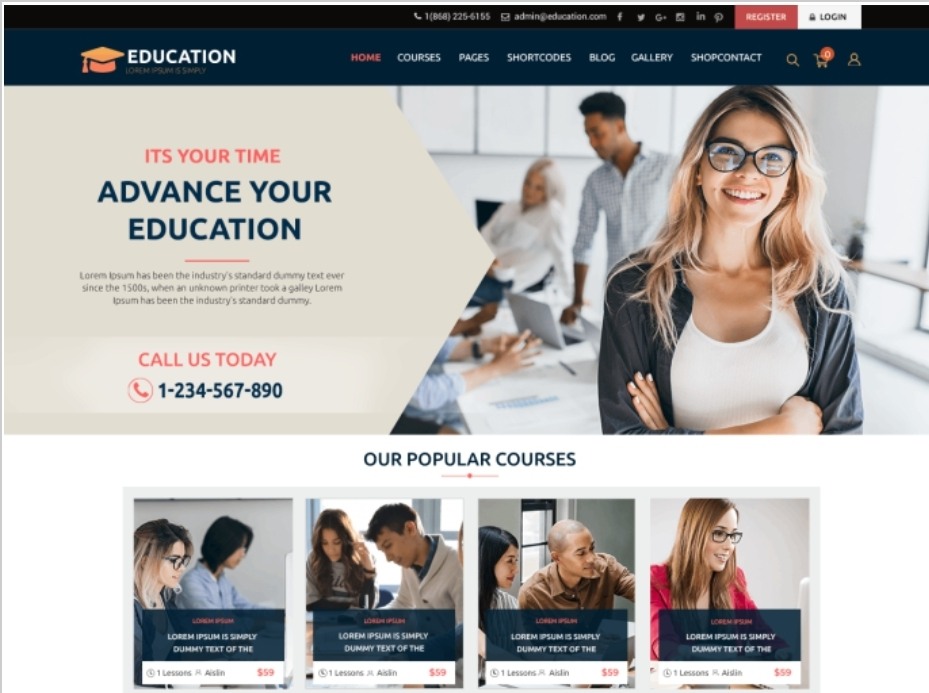 Another theme for an education website that has a vibrant design and amazing flexibility is the Education Zone. Additionally, it is aesthetically pleasing, contemporary, simple to use, and responsive. This theme is capable of meeting the general requirements of websites for all types of educational institutions.