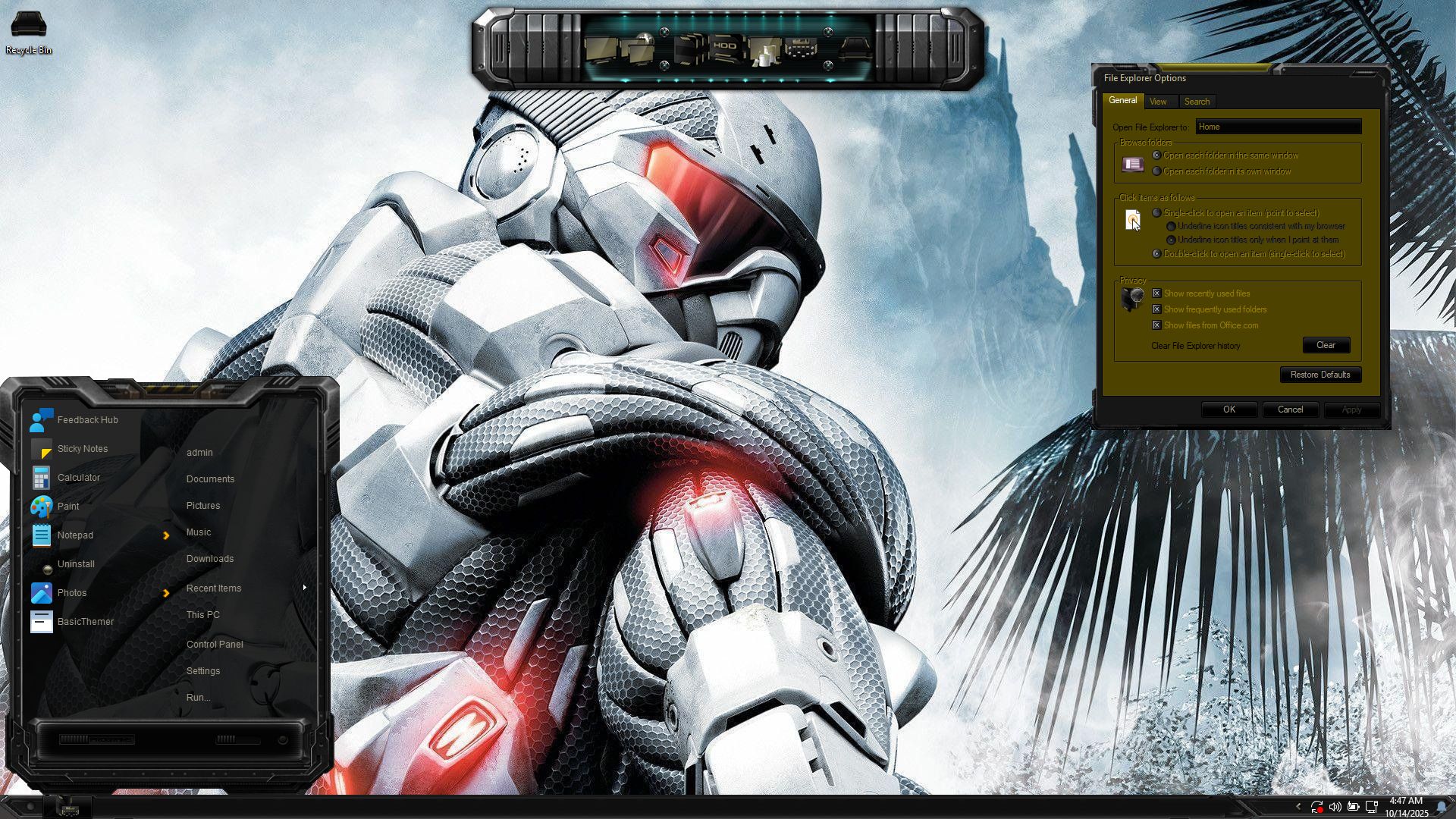 Crysis Skin Pack are about to change the look of your Windows 11 and 10 theme! The new version of Crysis Skin Pack is here now! the best experiences of Crysis in Windows 11 and 10. in this new version we update many parts of theme pack, now the installer will transform your Windows 11 and 10 to Crysis just in a few minutes, we update many things, Hope you like this new skin pack and enjoy it!