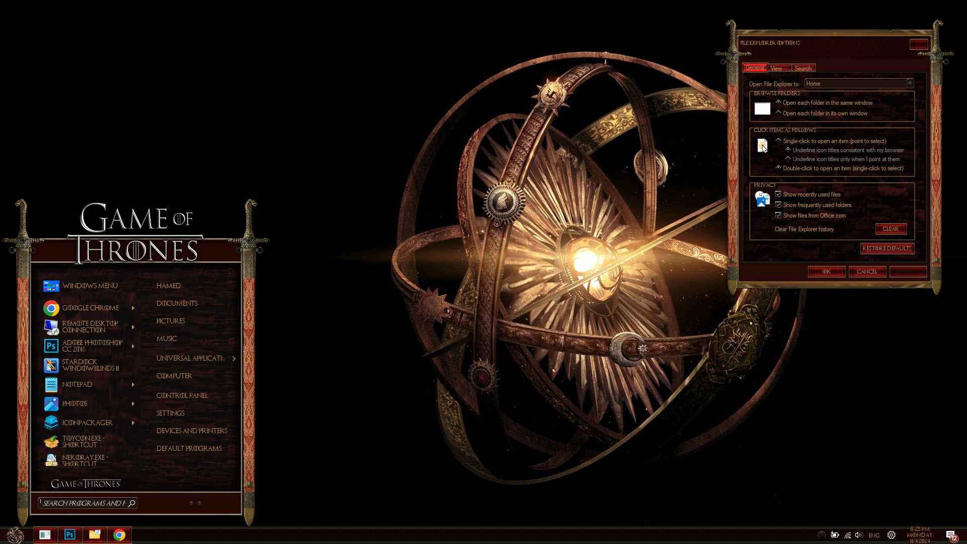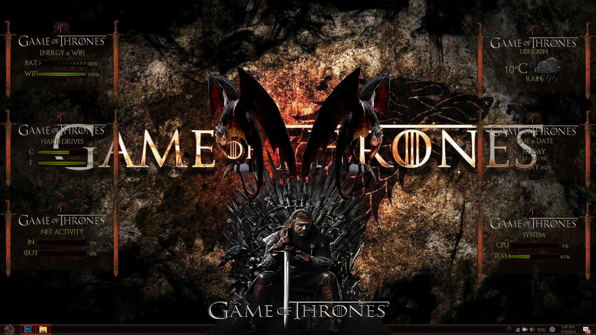 Game Of Thrones Premium Skin Pack are about to change the look of your Windows theme! The new version of Game Of Thrones Premium Skin Pack is here now! the best experiences of Game Of Thrones Premium in WindowBlinds. in this new version we update many parts of theme pack, now the installer will transform your Windows to Game Of Thrones Premium just in a few minutes, we update many things, Hope you like this new skin pack and enjoy it!