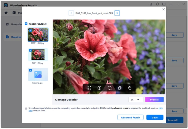 Step 4: To see the repair results, click the “Preview” button or just click on the image thumbnail to open its preview window.