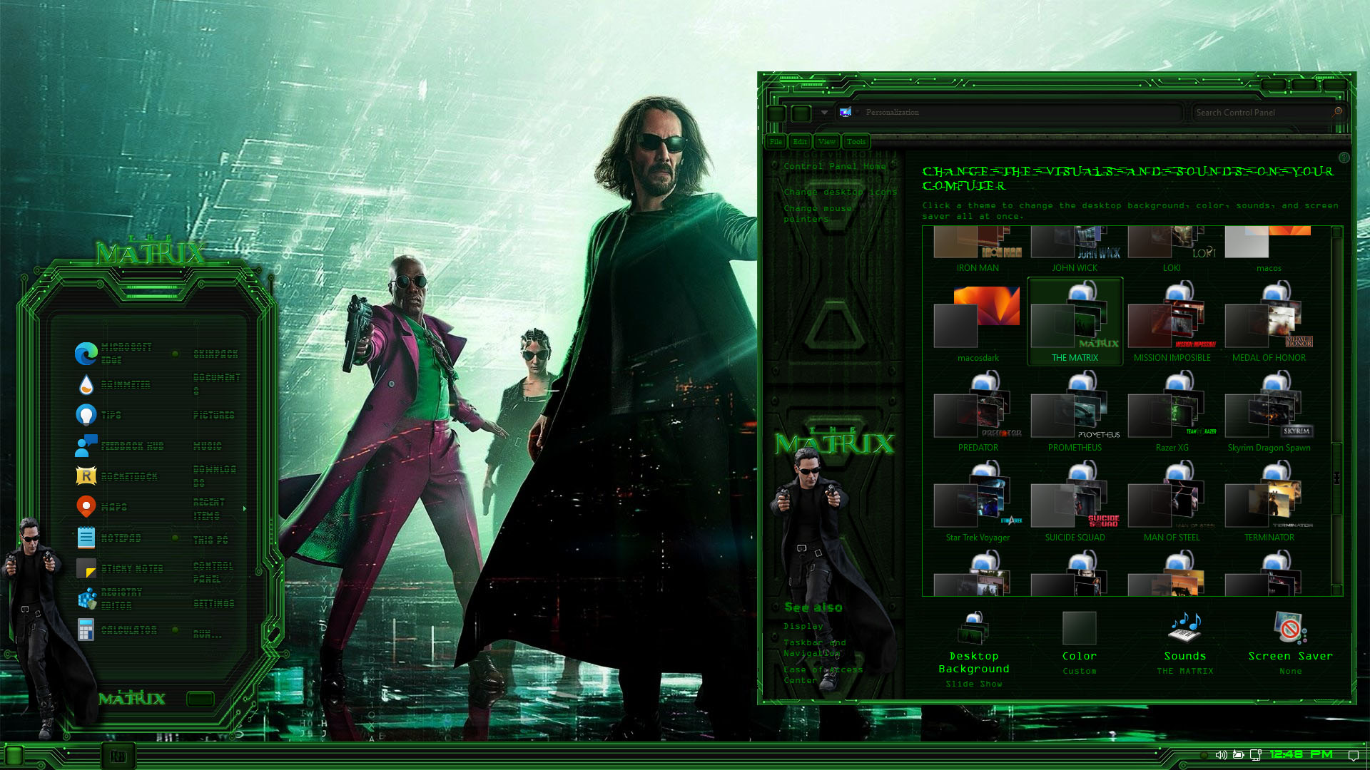 The Matrix Premium Skin Pack are about to change the look of your Windows 11 theme! The new version of The Matrix Premium Skin Pack is here now! the best experiences of The Matrix Premium in Windows 11. in this new version we update many parts of theme pack, now the installer will transform your Windows 11 to The Matrix Premium just in a few minutes, we update many things, Hope you like this new skin pack and enjoy it!