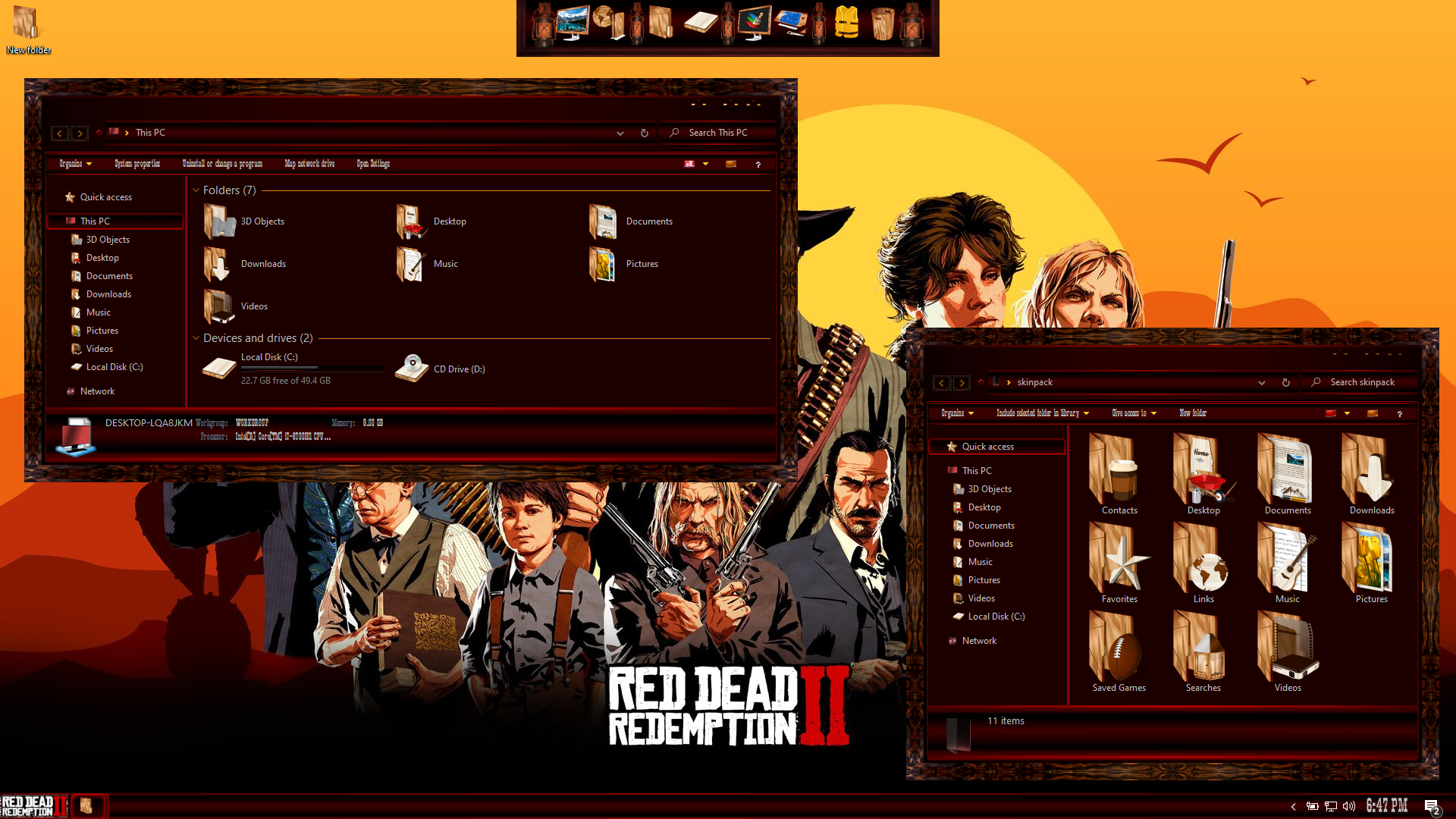 Red Dead II Premium Skin Pack are about to change the look of your Windows 10 theme! The new version of Red Dead II Premium Skin Pack is here now! the best experiences of Red Dead II Premium in Windows 10 . in this new version we update many parts of theme pack, now the installer not need to restart your Windows and it will transform your Windows 10 to Red Dead II Premium just in a few minutes, we fix all bugs and problems in theme pack and update many things,Hope you like this new skin pack and enjoy it!