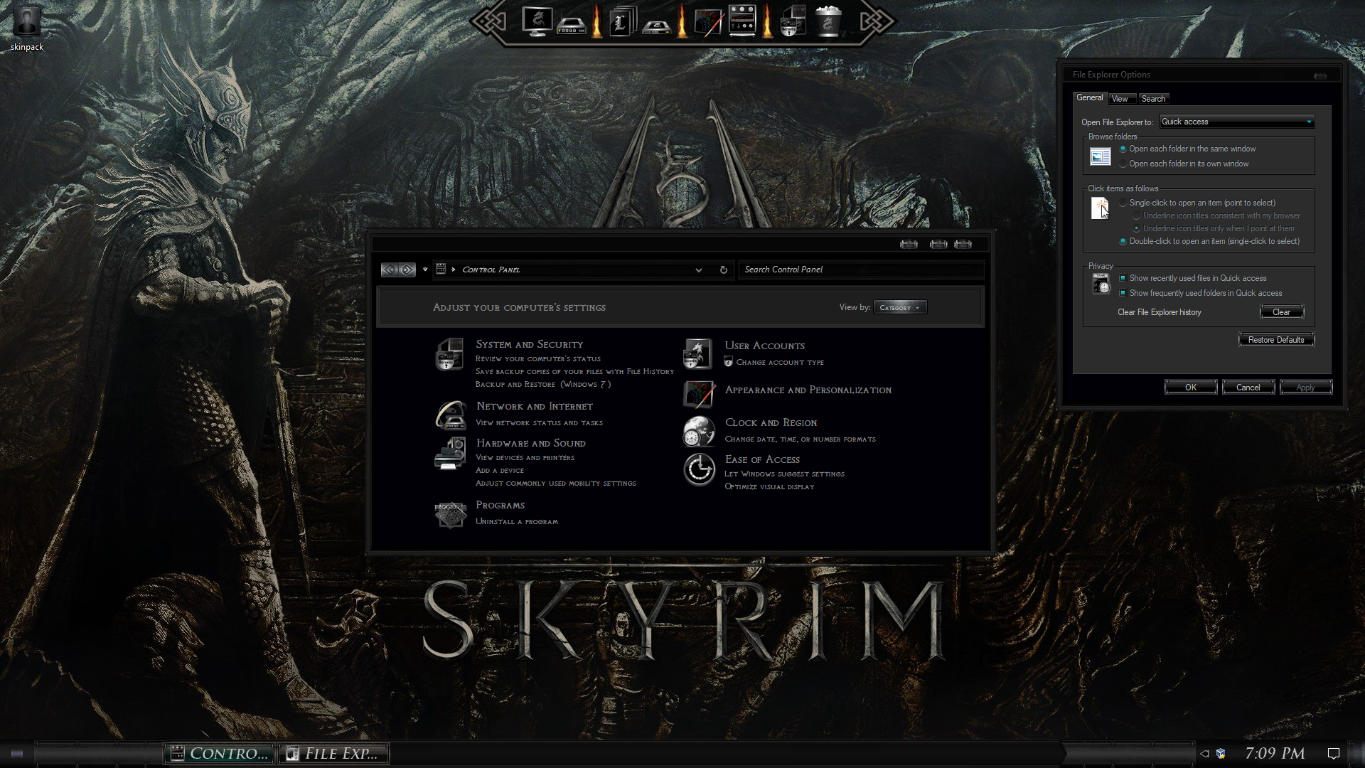 Skyrim Dragonborn Premium Skin Pack are about to change the look of your Windows 10 theme! The new version of Skyrim Dragonborn Premium Skin Pack is here now! the best experiences of Skyrim Dragonborn Premium in Windows 10 . in this new version we update many parts of theme pack, now the installer not need to restart your Windows and it will transform your Windows 10 to Skyrim Dragonborn Premium just in a few minutes, we fix all bugs and problems in theme pack and update many things,Hope you like this new skin pack and enjoy it!