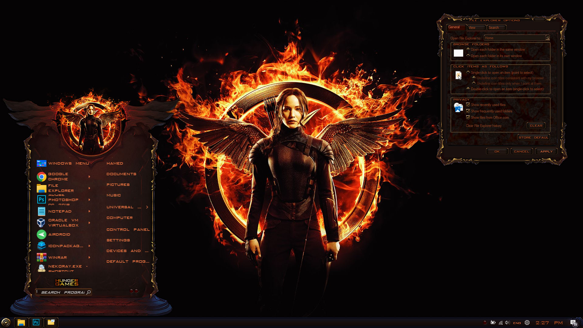 THE HUNGER GAMES Premium Skin Pack are about to change the look of your Windows theme! The new version of THE HUNGER GAMES Premium Skin Pack is here now! the best experiences of THE HUNGER GAMES Premium in WindowBlinds. in this new version we update many parts of theme pack, now the installer will transform your Windows to THE HUNGER GAMES Premium just in a few minutes, we update many things, Hope you like this new skin pack and enjoy it!
