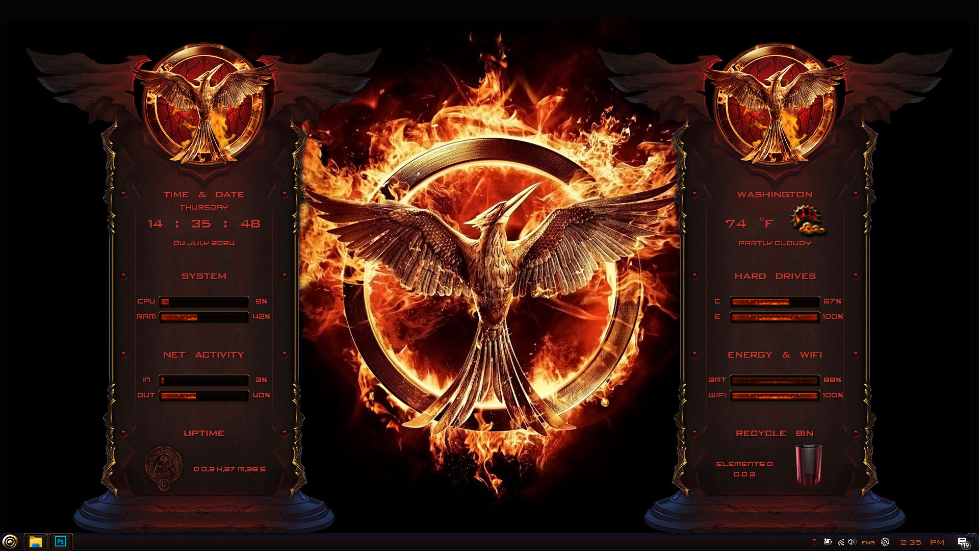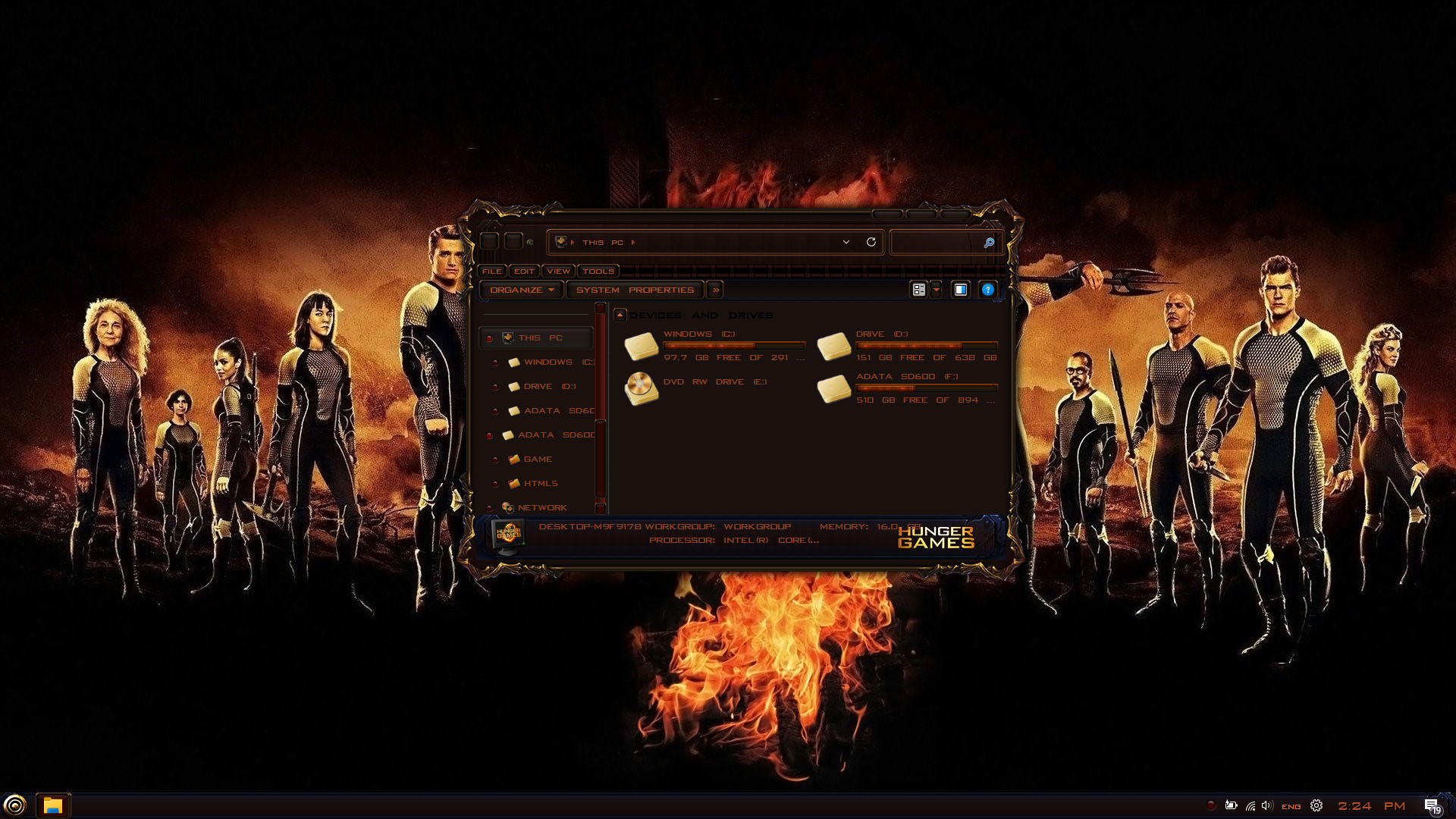 THE HUNGER GAMES Premium Skin Pack are about to change the look of your Windows theme! The new version of THE HUNGER GAMES Premium Skin Pack is here now! the best experiences of THE HUNGER GAMES Premium in WindowBlinds. in this new version we update many parts of theme pack, now the installer will transform your Windows to THE HUNGER GAMES Premium just in a few minutes, we update many things, Hope you like this new skin pack and enjoy it!