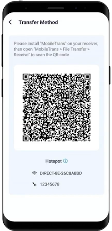 When specifying the files, select the “Send” button to proceed. Scan a QR code on the screen from your iPhone to establish a connection for transferring data. You can also manually connect the devices through a hotspot connection that is visible on the screen.