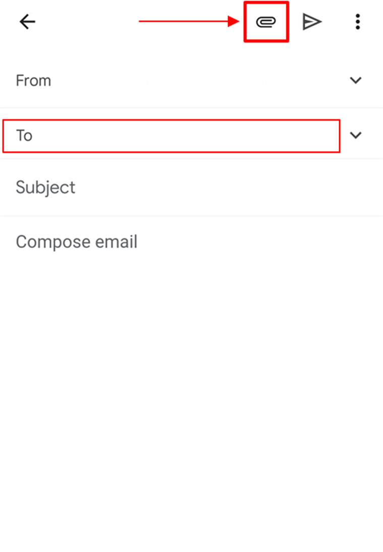 Step 2: Insert the email account that is logged into your iPhone in the address bar, and click the “Attachment” icon from the top right.