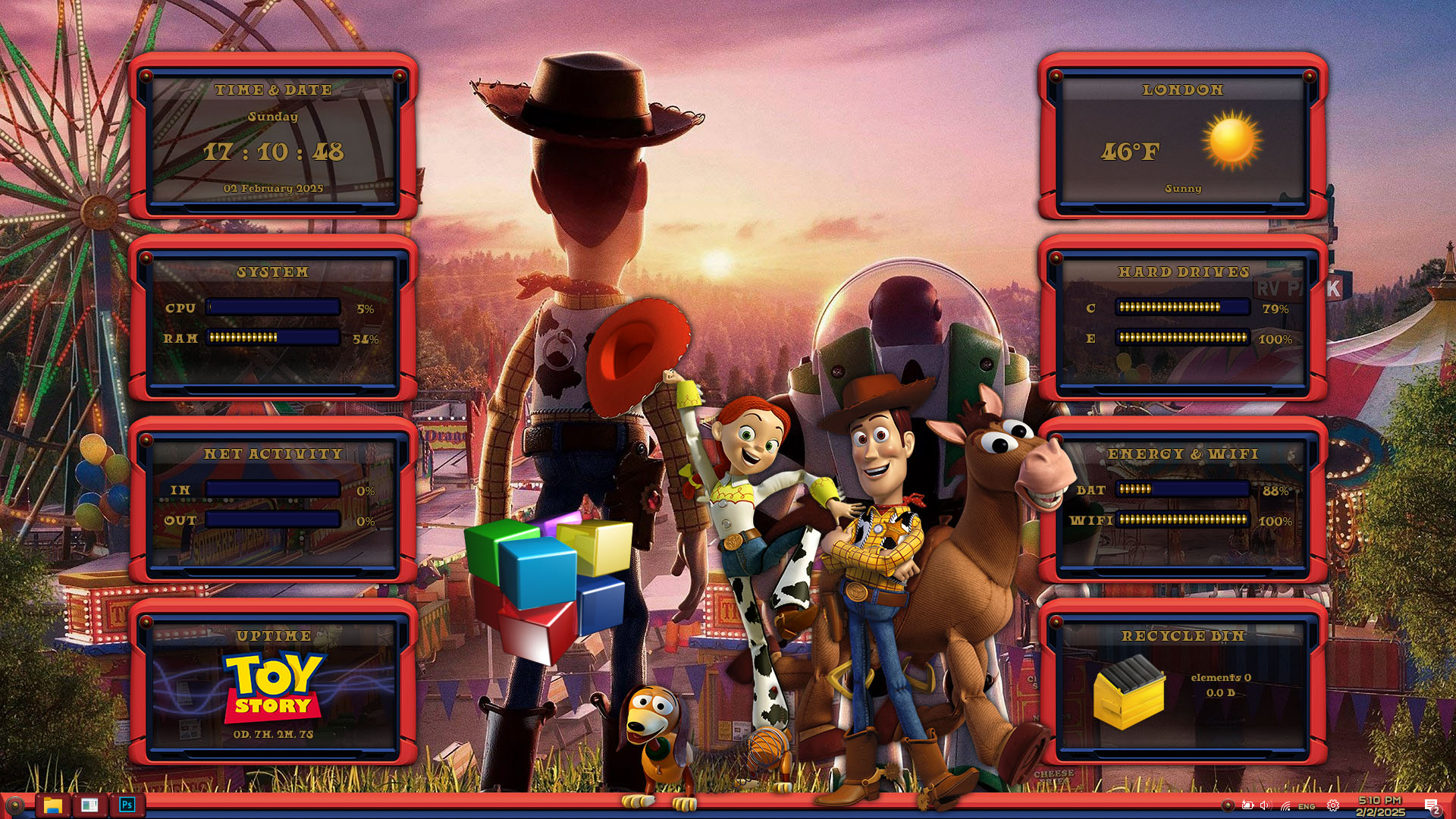 TOY STORY Premium Skin Pack are about to change the look of your Windows theme! The new version of TOY STORY Premium Skin Pack is here now! the best experiences of TOY STORY Premium in WindowBlinds. in this new version we update many parts of theme pack, now the skin pack will transform your Windows to TOY STORY Premium just in a few minutes, we update many things, Hope you like this new skin pack and enjoy it.