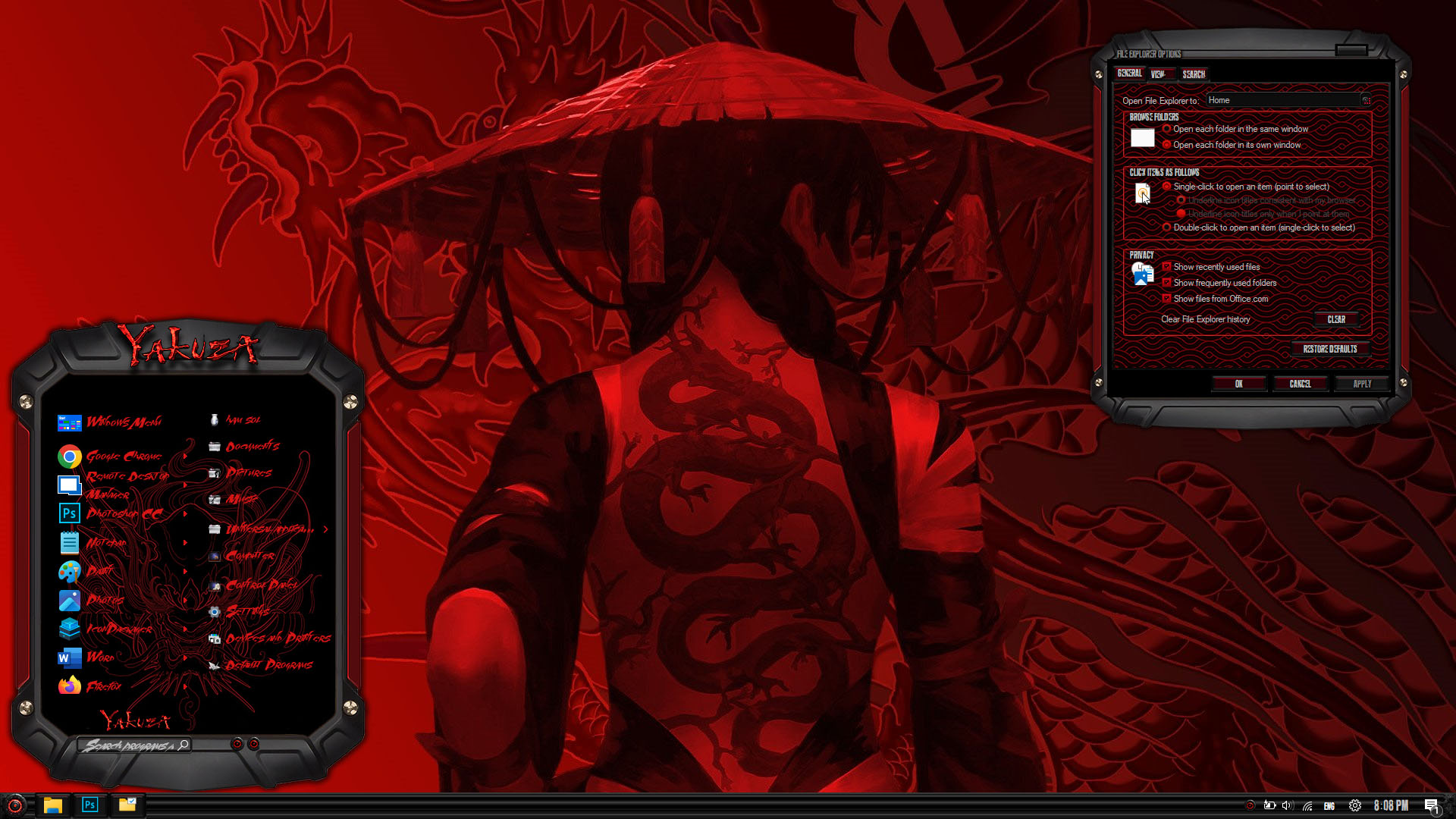 YAKUZA Premium Skin Pack are about to change the look of your Windows theme! The new version of YAKUZA Premium Skin Pack is here now! the best experiences of YAKUZA Premium in WindowBlinds. in this new version we update many parts of theme pack, now the skin pack will transform your Windows to YAKUZA Premium just in a few minutes, we update many things, Hope you like this new skin pack and enjoy it.